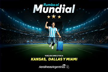 Aerolíneas Argentinas dio inicio a su campaña "Llevamos Campeones" con la partida del vuelo chárter que traslada al cuerpo técnico y parte del plantel del equipo argentino de fútbol rumbo a los EE. UU., la sede principal de la próxima Copa América. |