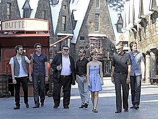 | Daniel Radcliffe y otras estrellas de las películas de Harry Potter recibieron hoy a los visitantes en la apertura oficial del nuevo “mini parque”, el Mágico Mundo de Harry Potter. Miles de personas hicieron cola ante las puertas de Universal para estar entre los primeros en entrar al parque de 20 acres que revive al detalle los libros y películas de Harry Potter, desde el pueblo de Hogsmeade, Hogwarts School of Witchcraft and Wizardry, así como la humeante locomotora del tren Hogwarts Express.
